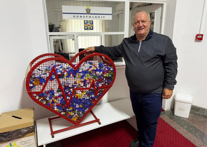 Градоначелник Лесковца и данас је убацио све прикупљене чепове у метално срце смештено у згради општине, уз поруку: