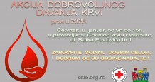 Akciju doborovoljnoga davanja krvi.će se održati 8. januara u prostorijama Crvenog krsta, od 9 do 15h